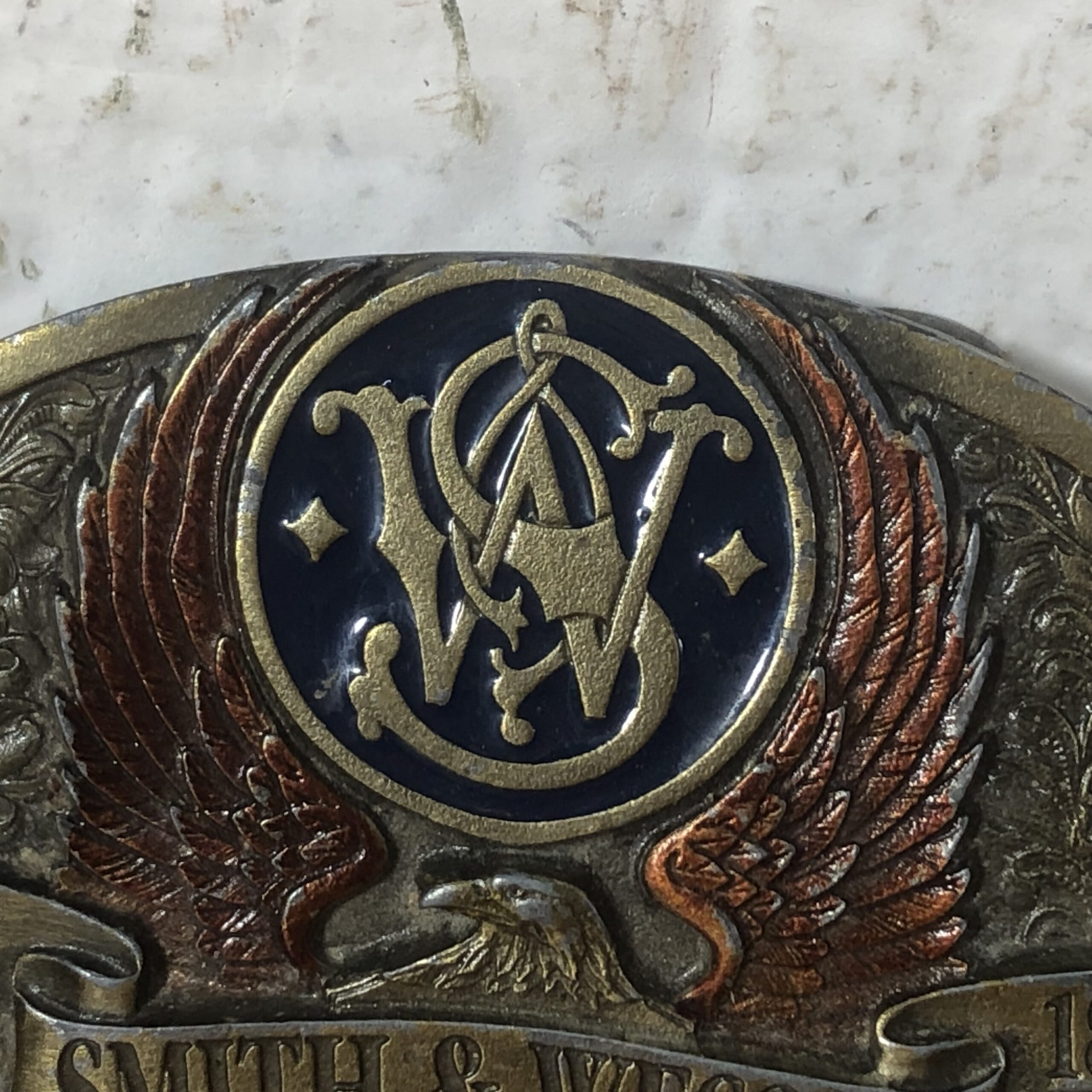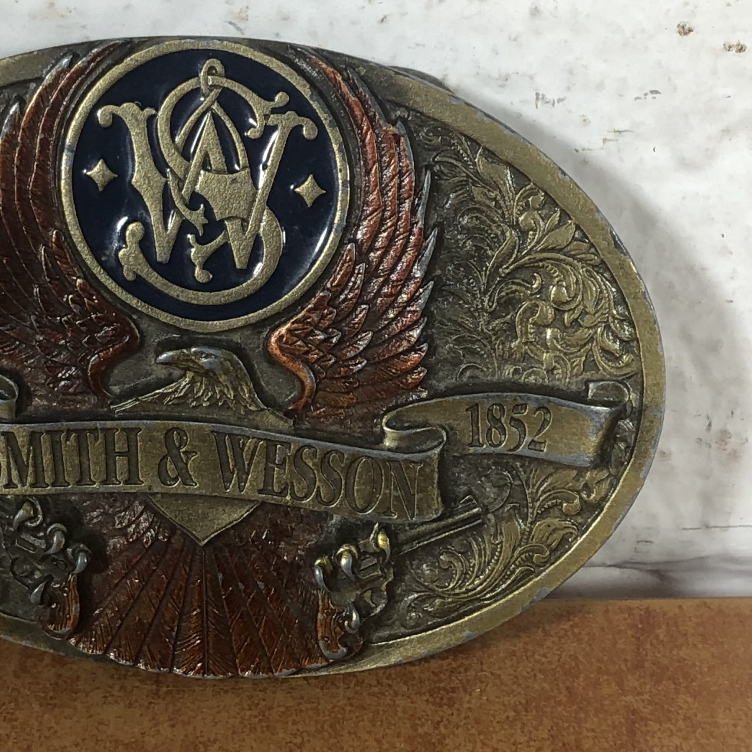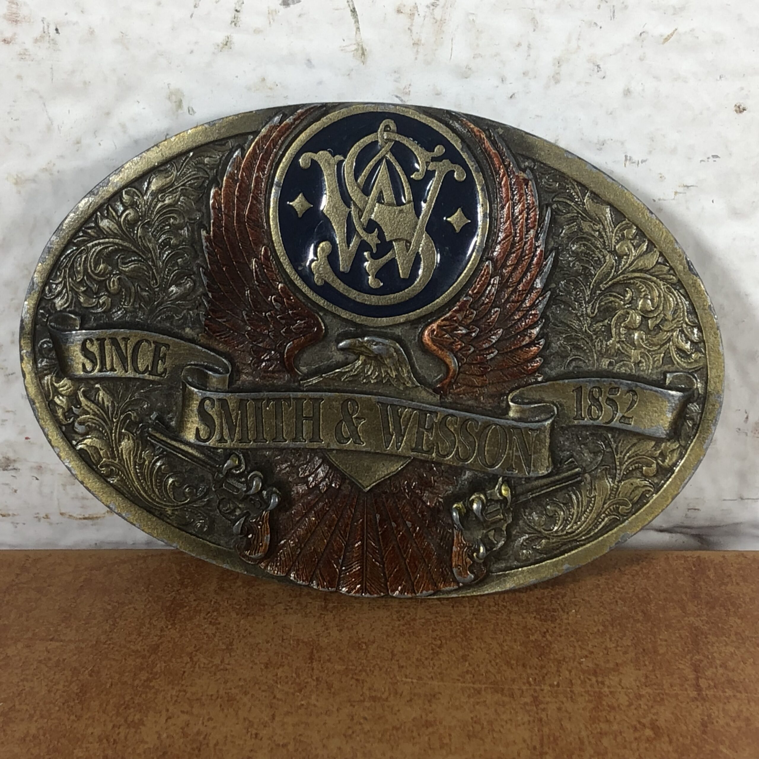 Vintage Brass Smith & Wesson Belt Buckle (Made in USA)